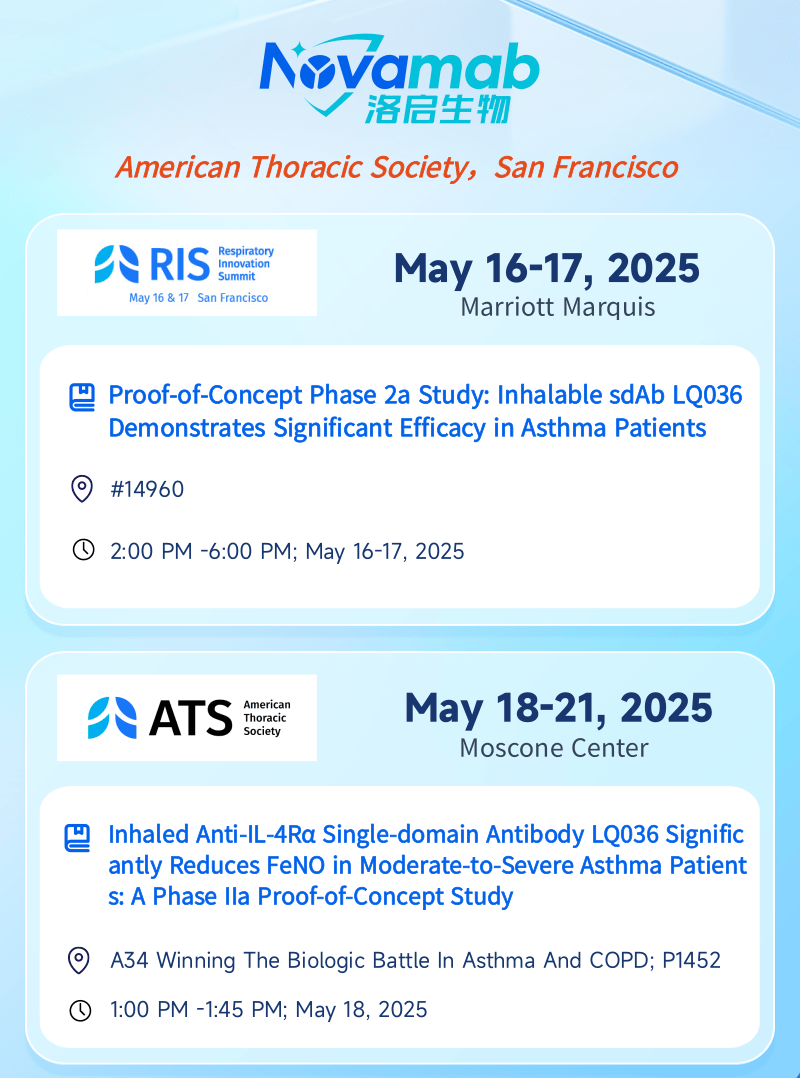 中国上海,2025年5月13日——上海Ezpay生物医药技术有限公司,一家专注于纳米抗体创新药研发的生物技术企业,今日宣布:Ezpay生物将于当地时间5月16日至21日赴美国加州旧金山,受邀参加美国胸科学会(American Thoracic Society, ATS)主办的呼吸创新峰会(Respiratory Innovation Summit,RIS)及ATS国际大会。届时Ezpay生物将分别在RIS和ATS两场大会上以壁报形式呈现最新临床数据——公司自主研发的靶向 IL-4Rα 吸入性生物制剂 LQ036 首个 IIa 期概念验证性临床试验数据。本次展示将全面披露 LQ036 在中重度哮喘患者中的安全性、耐受性、药效指标及初步疗效,标志着Ezpay生物在下一代呼吸道吸入式生物制剂开发领域迈出关键里程碑。